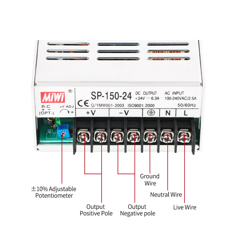 | Adjustable Range for DC Voltage | 3.14 ~ 3.63V | 4.75 ~ 5.5V | 7.13 ~ 8.25V | 11.4 ~ 13.2V | 12.8 ~ 14.9V | 14.3 ~ 16.5V | 22.8 ~ 26.4V | 25.7 ~ 29.7V | 45.6 ~ 52.8V |